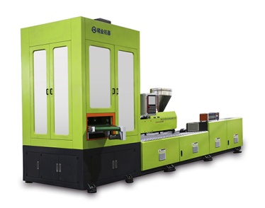 ????????該機(jī)型采用三工位結(jié)構(gòu),即第一工位注射瓶坯,第二工位拉伸吹瓶,第三工位脫瓶,其優(yōu)勢(shì)在于管坯注塑成型后,利用自身所保留的熱量,直接進(jìn)行拉伸吹塑,避免了管坯先要冷卻,損失熱量,然后再加溫,能量反復(fù)消耗的缺點(diǎn)。產(chǎn)品只一次成型,沒有中間轉(zhuǎn)運(yùn)環(huán)節(jié),徹底杜絕管坯相互碰撞的可能性,保證了極高的外觀質(zhì)量。