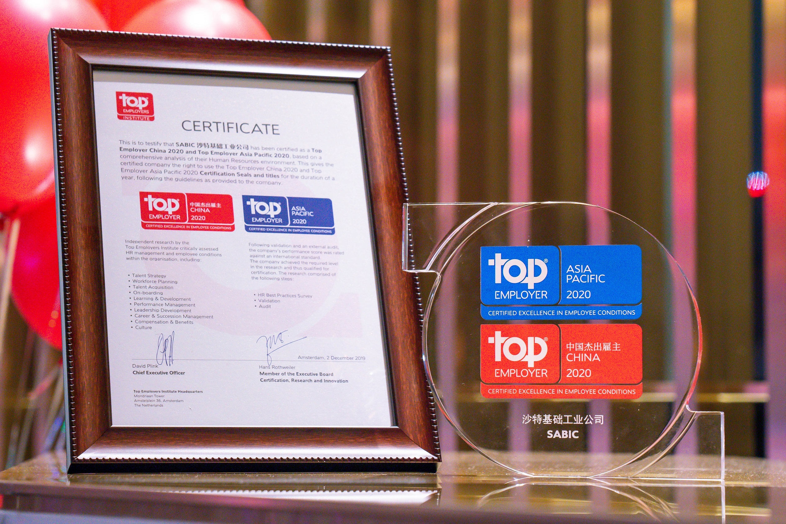 SABIC獲得2020年度“中國杰出雇主”和“亞太地區杰出雇主”認證